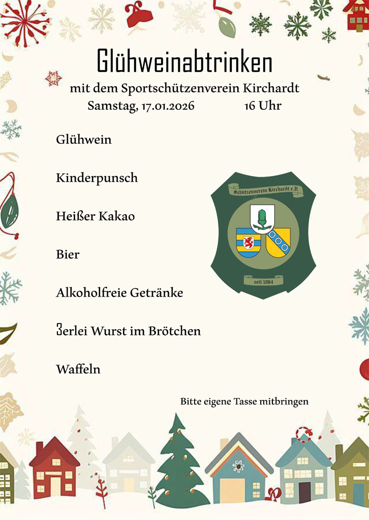 wir laden herzlich zum gemütlichen Glühweintrinken beim Schützenverein ein.
