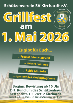 wir laden euch herzlich zu unserem Grillfest am 1. Mai ein. Wir freuen uns über zahlreiche Besucher und eine gemütliche Zeit im Freien.